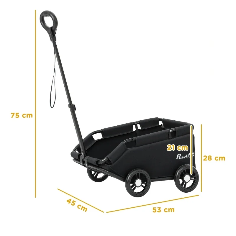 Dieser faltbare Hundebuggy ist ideal für kleine Hunde bis 4 kg und bietet Komfort, Sicherheit und einfache Handhabung. Der Buggy ist mit einem verstellbaren Schiebebügel ausgestattet, sodass Sie den Winkel für einen bequemen Spaziergang anpassen können. Er lässt sich einfach zu einer kompakten Größe zusammenfalten, ideal für Transport und Aufbewahrung.