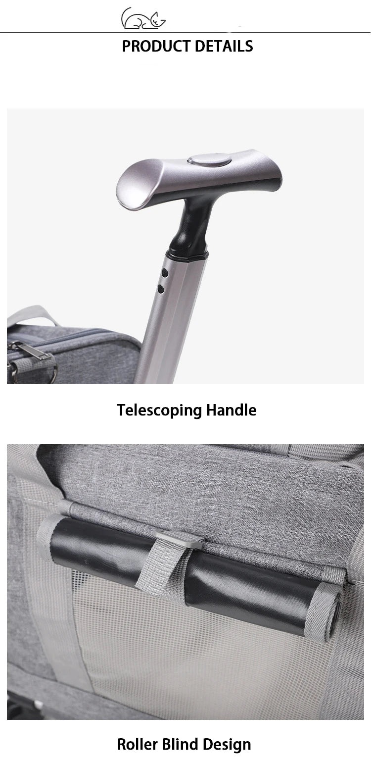 CONVENIENT MOBILITY: Our pet travel carrier features smooth-gliding wheels and a telescopic handle, allowing you to easily transport your pet through airports, train stations, or any travel destination. It minimizes the strain of carrying, making travel more comfortable for both you and your pet.